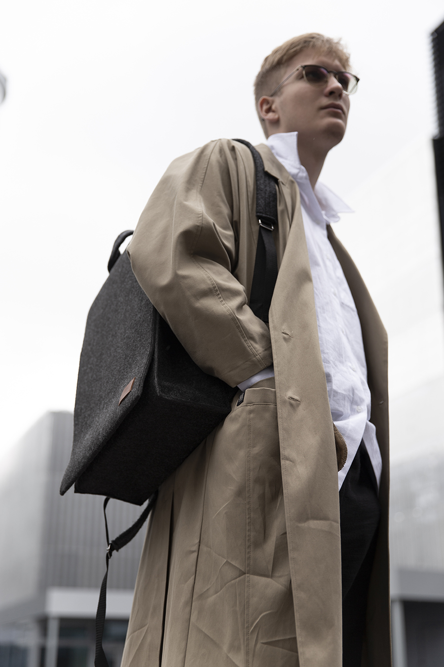 Selge geomeetria ja vastupidava vildi kombinatsioon loovad modernse ja isikupärase väljanägemise. Eesmine klapp sulgub magnetkinnitustega ning sees on eraldi sülearvutitasku. Reguleeritavad rihmad tagavad mugava kandmise nii linnas kui reisil.